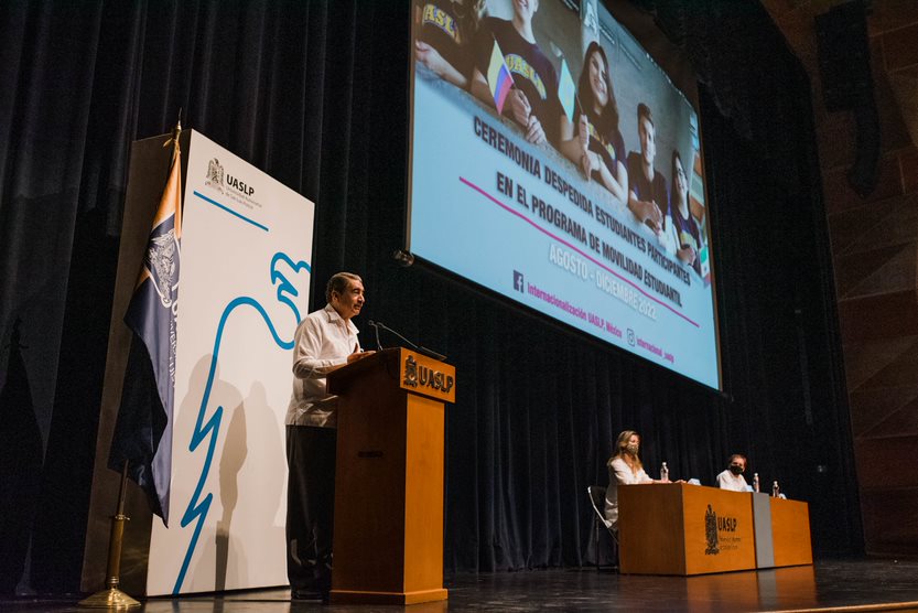 El rector de la Universidad Autónoma de San Luis Potosí, doctor Alejandro Javier Zermeño Guerra, encabezó la ceremonia de despedida para 131 estudiantes que participan en el Programa de Movilidad Estudiantil para cursar estudios en países como Alemania, Argentina, Chile, Canadá, España, Colombia, Francia, así como en universidades de la República Mexicana.