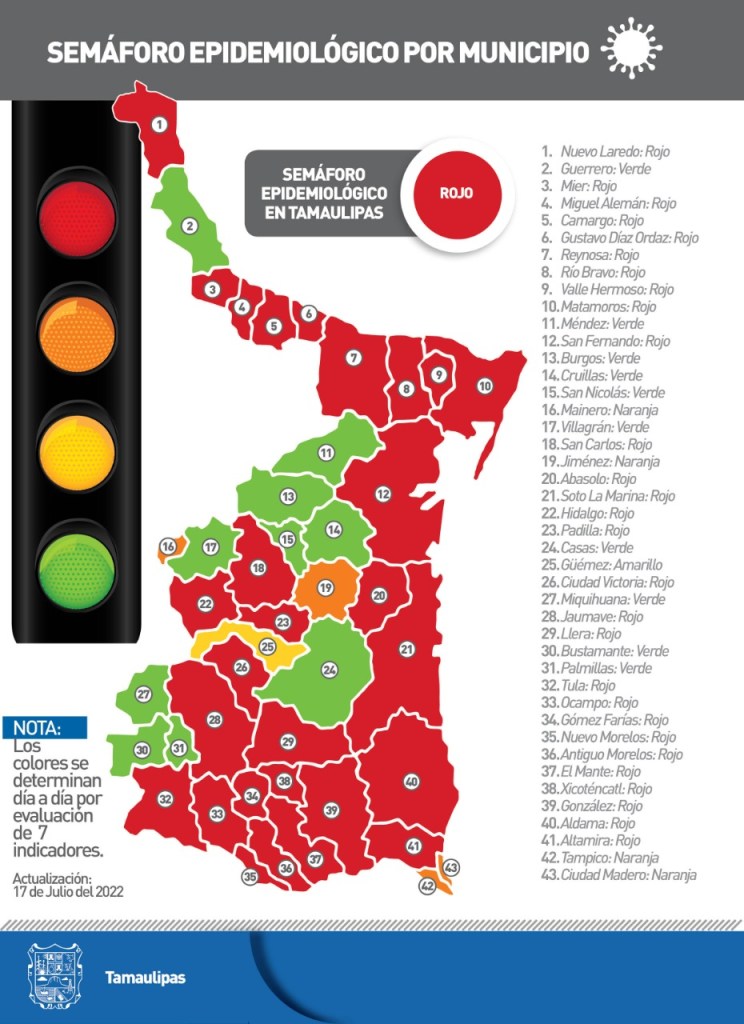 El estado de Tamaulipas regresó a semáforo epidemiológico rojo ante el repunte de casos de COVID-19.