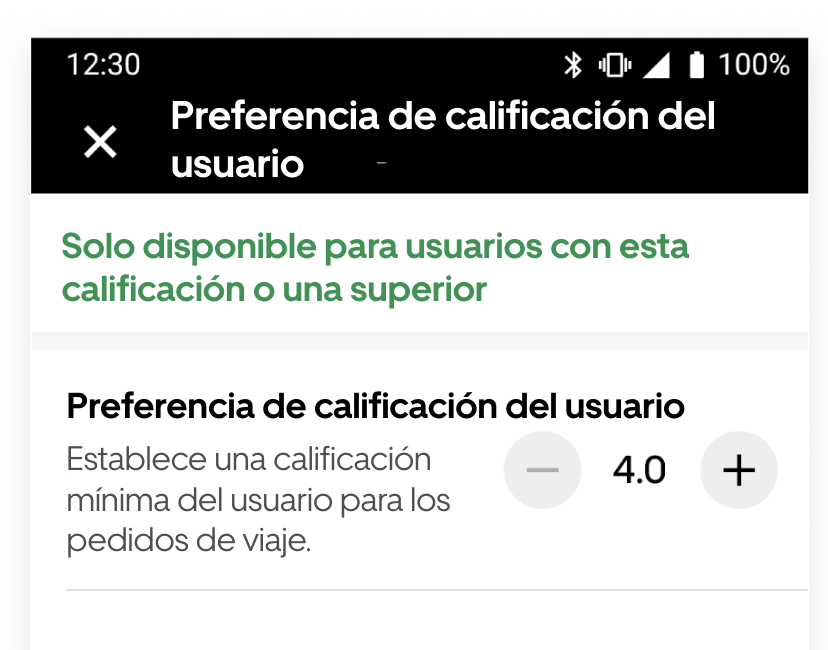 - Define el valor mínimo para recibir solicitudes de viaje.