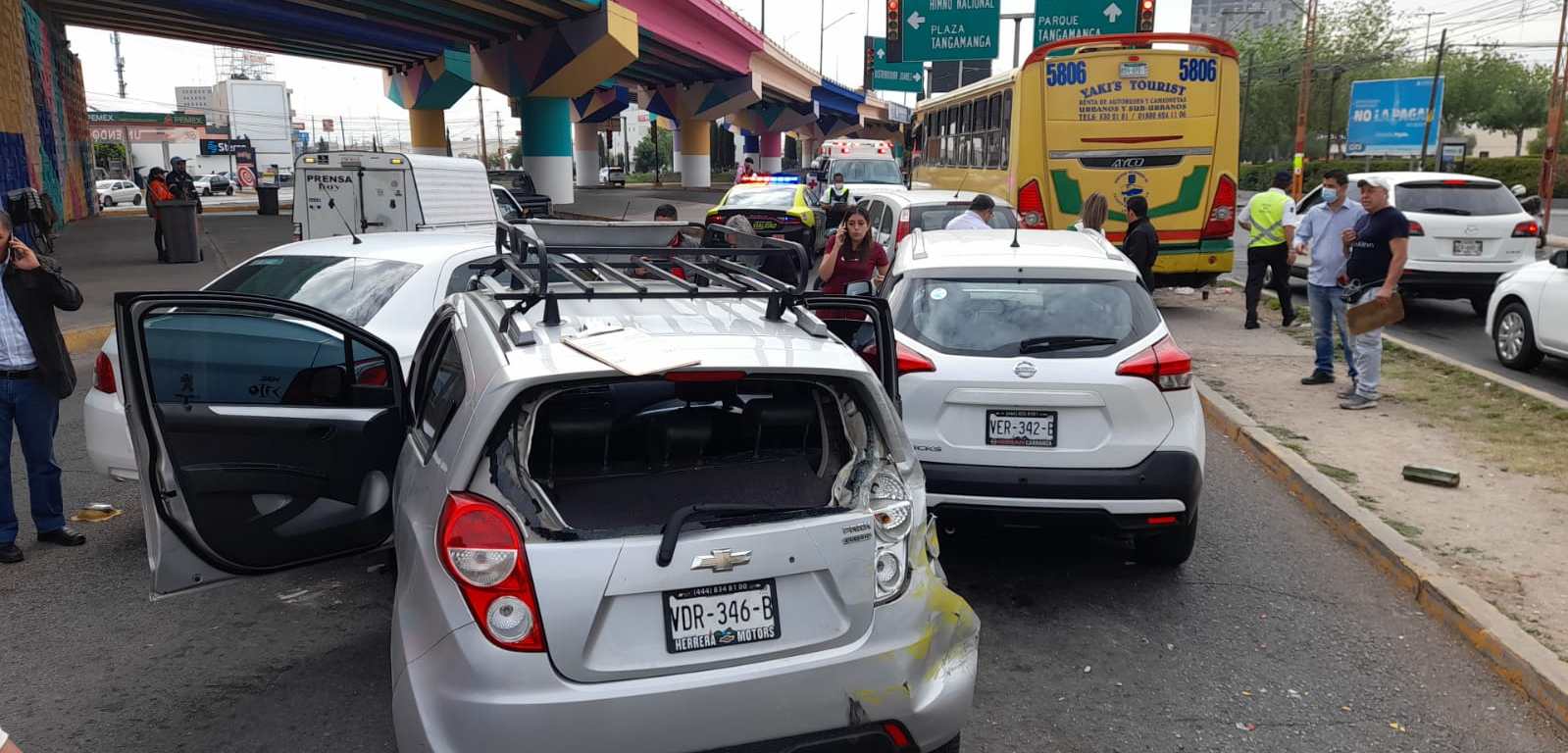 La unidad 5806 con placas 854-698-T de Yakis Tourist envistió por lo menos a tres vehículos y el conducto del camión urbano se dio a la fuga luego del percance, ademas de los vehículos dañados la unidad de transporte destrozo una estructura de anuncios que se encontraba en el camellón.