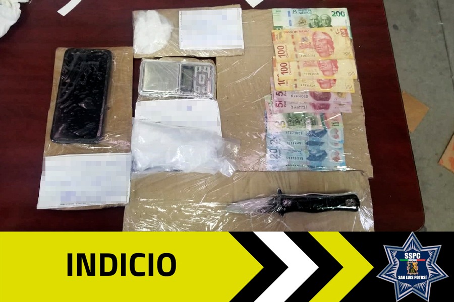 Los agentes municipales lograron detenerlos y enseguida procedieron a una revisión preventiva de seguridad, encontrando que uno de los detenidos portaba una bolsa transparente en cuyo interior había una sustancia blanca granulada con características al químico conocido como cristal, en tanto al otro sujeto le fue encontrado una navaja de aproximadamente ocho centímetros de hoja.