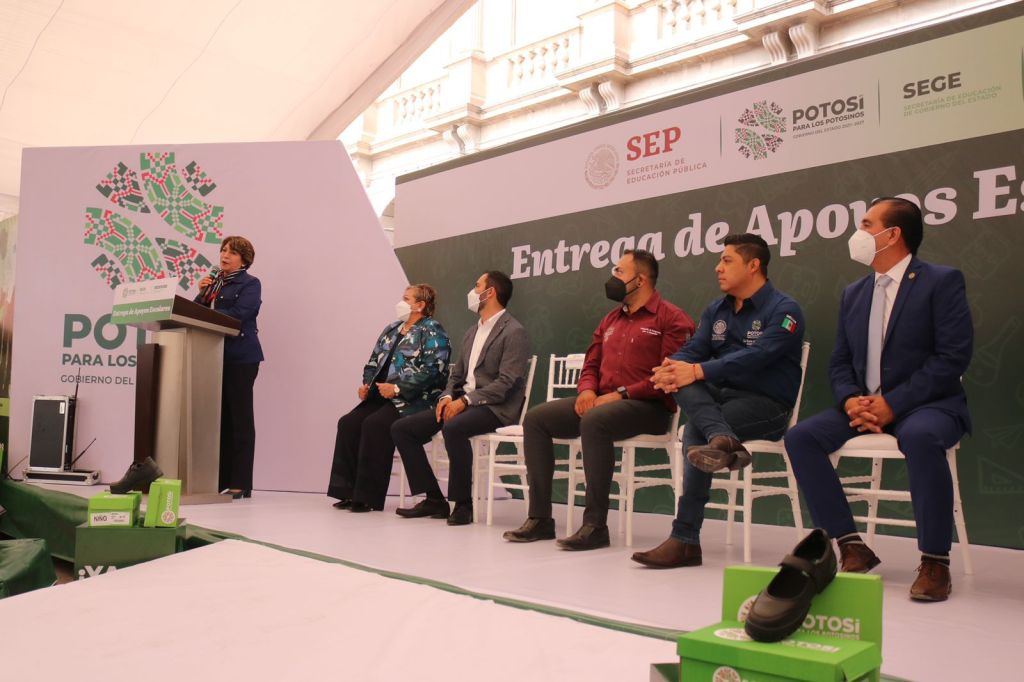 Durante su visita a San Luis Potosí, la titular de la SEP Delfina Gómez Álvarez reconoció el esfuerzo y compromiso del Gobierno que preside Ricardo Gallardo Cardona, a favor de los que menos tienen, “los programas de apoyos escolares basado en útiles y zapatos, son un aliciente para abatir el rezago educativo, para los padres y madres de familia que durante la pandemia vieron reducido su poder adquisitivo, este es uno de los primeros gobiernos que impulsan este tipo de acciones”.
