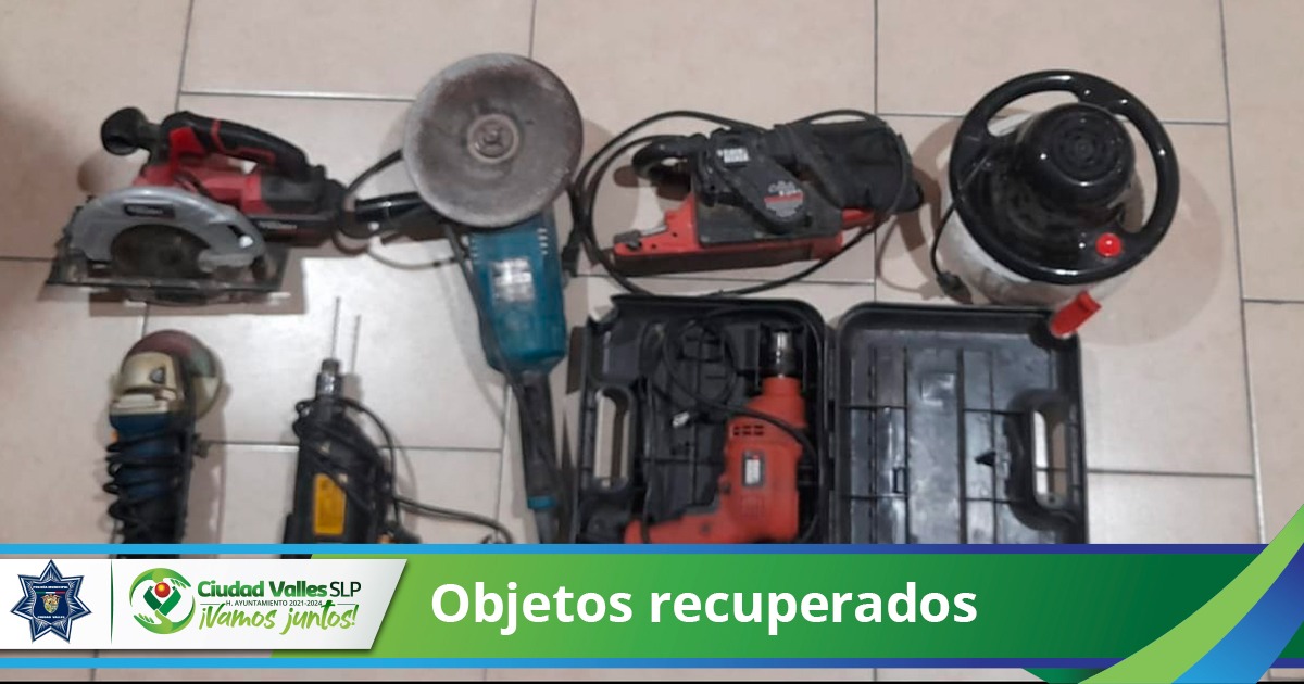 Derivado de estas acciones, también se aseguro a la mujer que dijo llamarse Brenda N., así como la recuperación de tres pulidoras, una cortadora, una lijadora, dos taladros y un estuche.