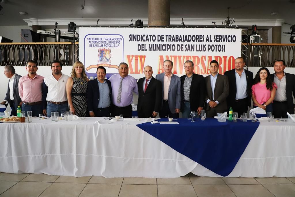 Durante la celebración por el XLV aniversario del Sindicato de Trabajadores al Servicio del Municipio, el presidente municipal señaló: “Quiero reconocerles como alcalde, pero sobre todo como habitante de esta ciudad, que si hoy estamos bien, en una ciudad hermosa, iluminada, segura, es gracias a todas y todos. Mi aplauso es para ustedes, de todo corazón”.