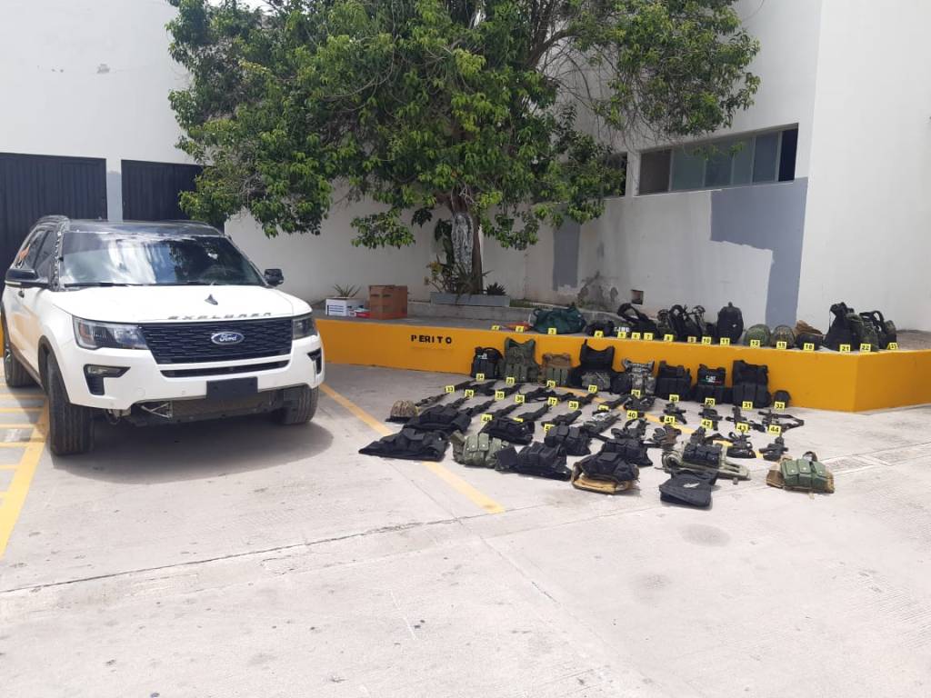 Derivado de la detención de una persona del sexo masculino la cual agredió con disparos de arma de fuego a personal de la Comision de Búsqueda de personas Desaparecidas se aseguró un inmueble ubicado en calle número 6 sin número de la colonia la selva de Ríoverde, donde el el interior del domicilio se apreciaba a simple vista tirado sobre el patio un chaleco tactico con las iniciales CJNG así como varios cargadores de armas largas además de un vehículo marca FORD tipo Explorer color blanco sin placas de circulación el cual está involucrado en varios reportes de gente armada en el municipio de Cerritos.