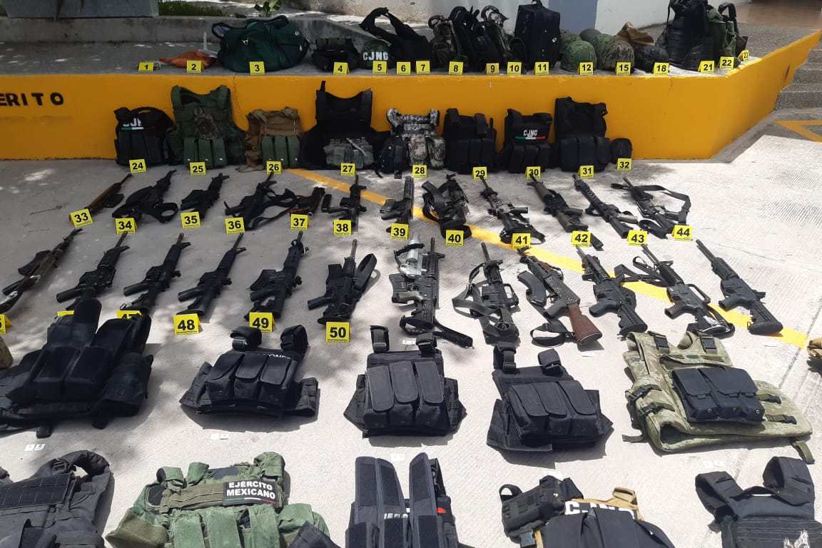 3.- 27 chalecos tácticos con las iniciales CJNG