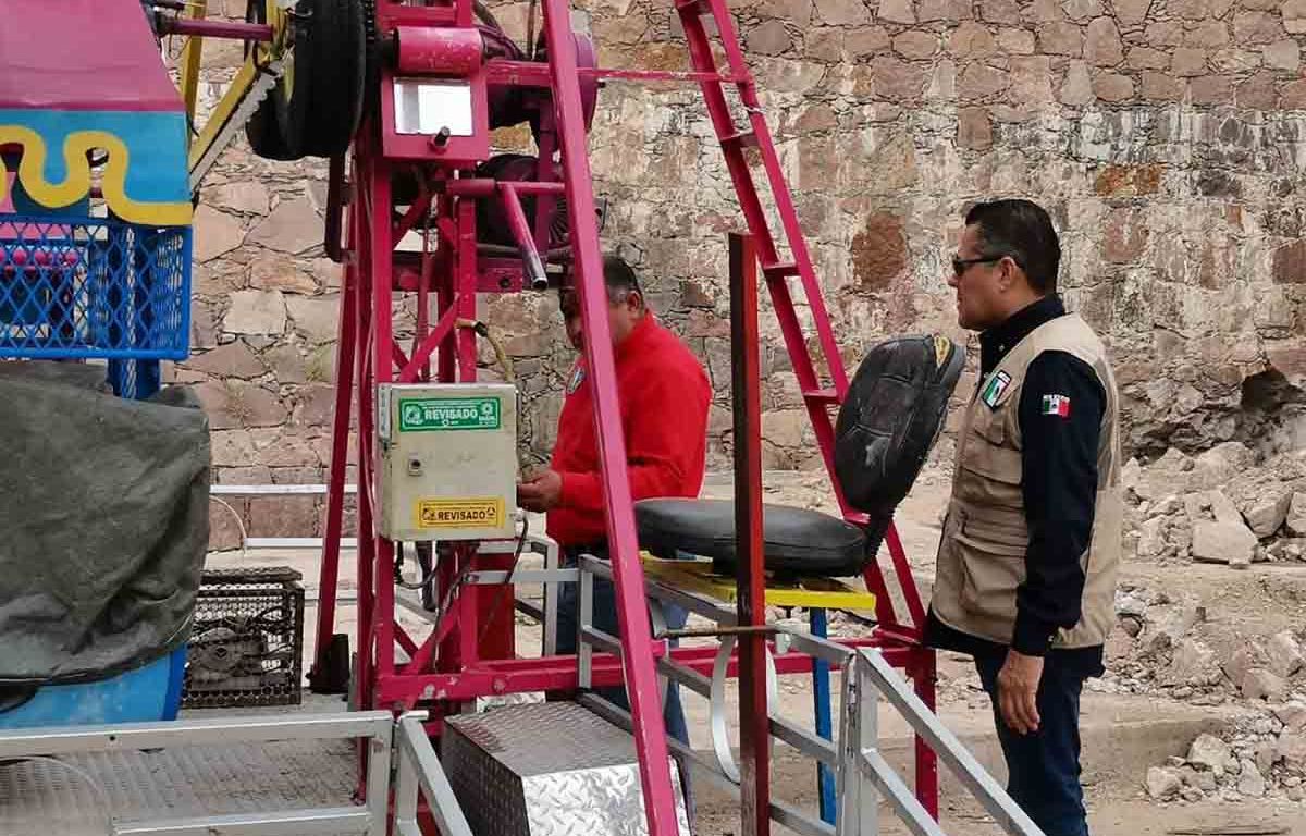 El director General de la dependencia, Mauricio Ordaz Flores informó que se supervisan las instalaciones eléctricas, el armado de las estructuras y juegos, además de que se les requiere una bitácora de mantenimiento, seguro de responsabilidad civil, memoria de cálculo y dictamen estructural.
