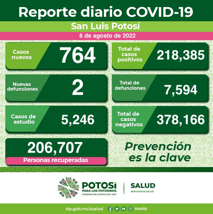 Se confirmaron 764 nuevos contagios de Covid-19 en la entidad. El Comité Estatal para la Seguridad en Salud y los Servicios de Salud informan que se registran 218 mil 385 casos totales de este padecimiento.