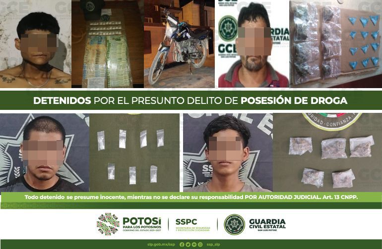 Gracias a los trabajos coordinados para preservar la paz en la Entidad potosina y como parte de la nueva estrategia integral para el combate frontal a los hechos delictivos, agentes de la Guardia Civil Estatal (GCE) detuvieron a 13 presuntos narcomenudistas en distintos operativos; además, se aseguraron 93 dosis de estupefacientes y numerario de supuesta procedencia ilícita.