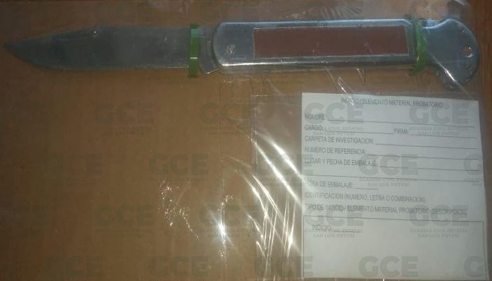 Otra de las detenciones fue en las calles Camino Viejo al Aguaje y Camino al Aguaje en la colonia Simón Díaz, en el lugar los oficiales de la GCE detuvieron a Esmeralda de 20 años de edad a quien se le aseguró un cuchillo de aproximadamente 25 centímetros.