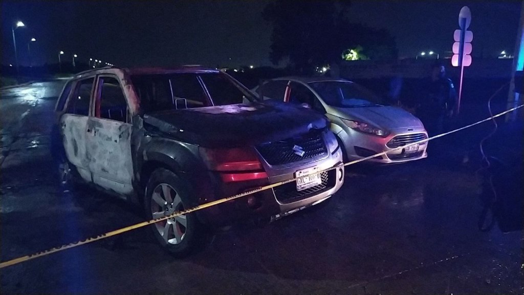 Mientras que una camioneta fue incendiada en la calle Limonero en la colonia Girasoles, a la cual presuntamente se le arrojó un artefacto incendiario.