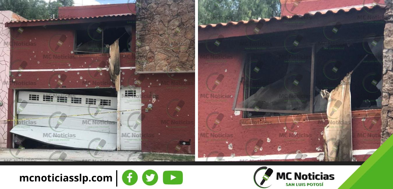 La casa quedó muy lastimada por la balacera y al final le prenden fuego.