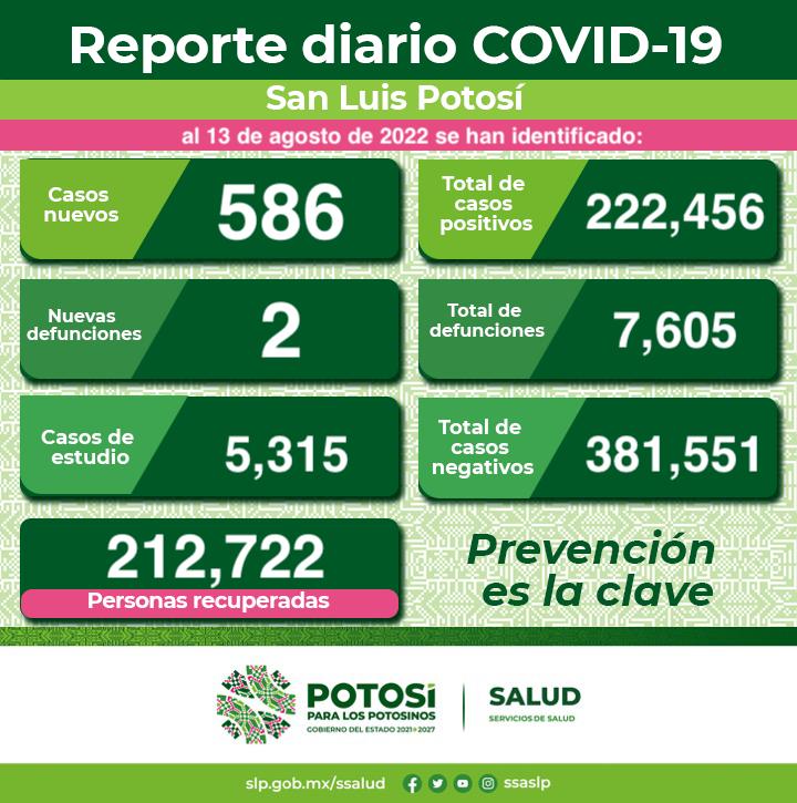 Se dan a conocer en el Informe Covid, 586 nuevos contagios confirmados en la Entidad. El Comité Estatal para la Seguridad en Salud y los Servicios de Salud informan que, se registran 221 mil 870 casos totales de esta enfermedad.