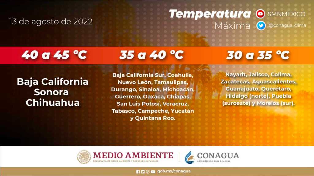 Pronóstico de temperaturas máximas para hoy 13 de agosto de 2022: