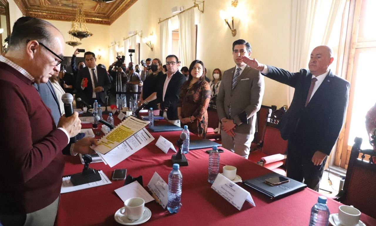 - En sesión solemne, el alcalde Enrique Galindo Ceballos le tomó la protesta de ley a Jorge Andrés López Espinosa.