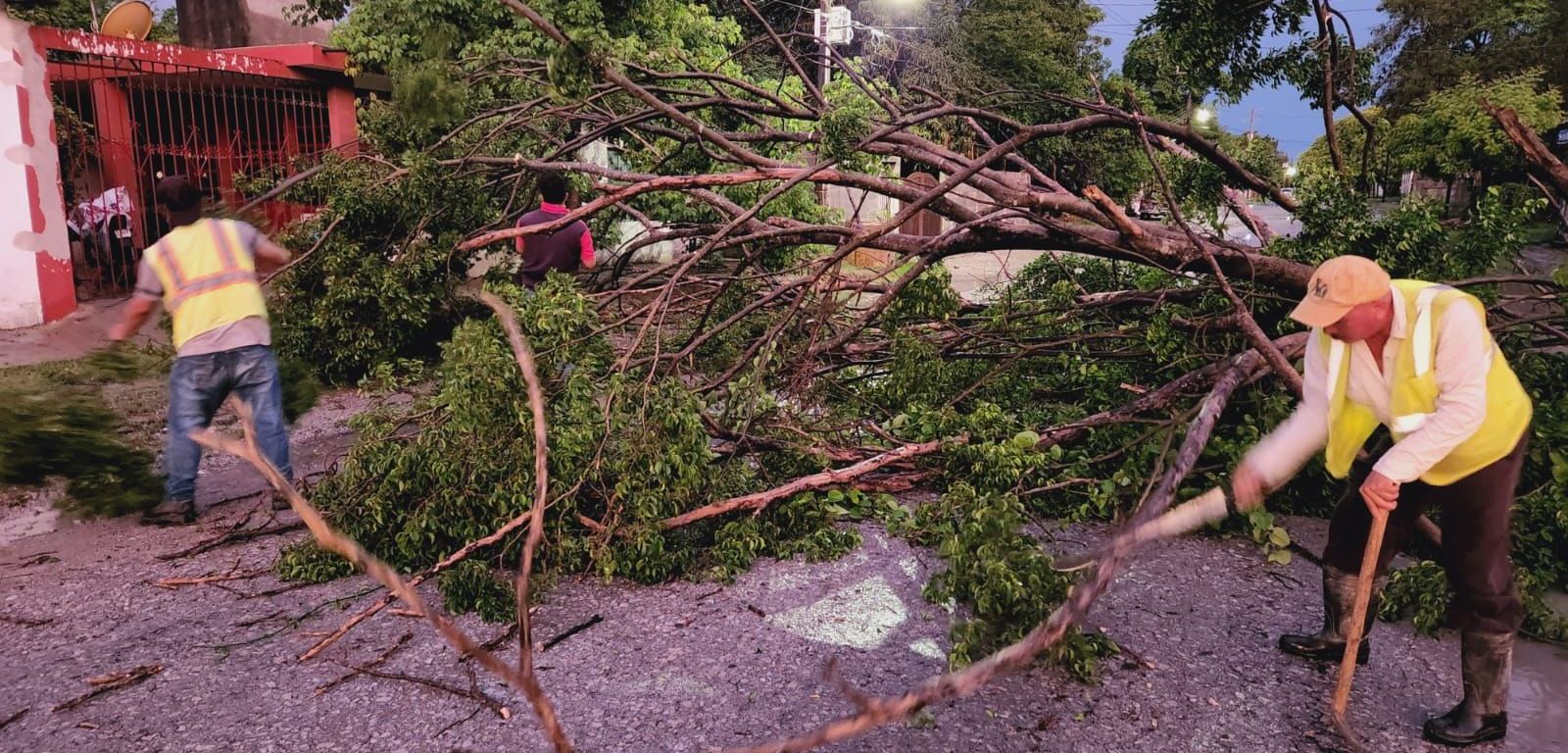 Personal de Servicios Municipales se encuentra atendido el retiro de un árbol caído sobre la calle Pedro Antonio Santos en el acceso a la colonia Estación.