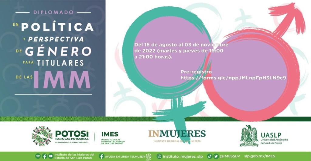 La titular del Instituto de las Mujeres del Estado (Imes), Marcela García Vázquez, indicó que estos Diplomados fueron gestionados por la dependencia que encabeza en colaboración con el Instituto Nacional de las Mujeres (Inmujeres) y la Universidad Autónoma de San Luis Potosí (UASLP) y serán facilitados por docentes de la universidad, así como de otras instituciones de educación superior y funcionarias y funcionarios con reconocida experiencia y trayectoria, tanto locales, como de otras entidades.