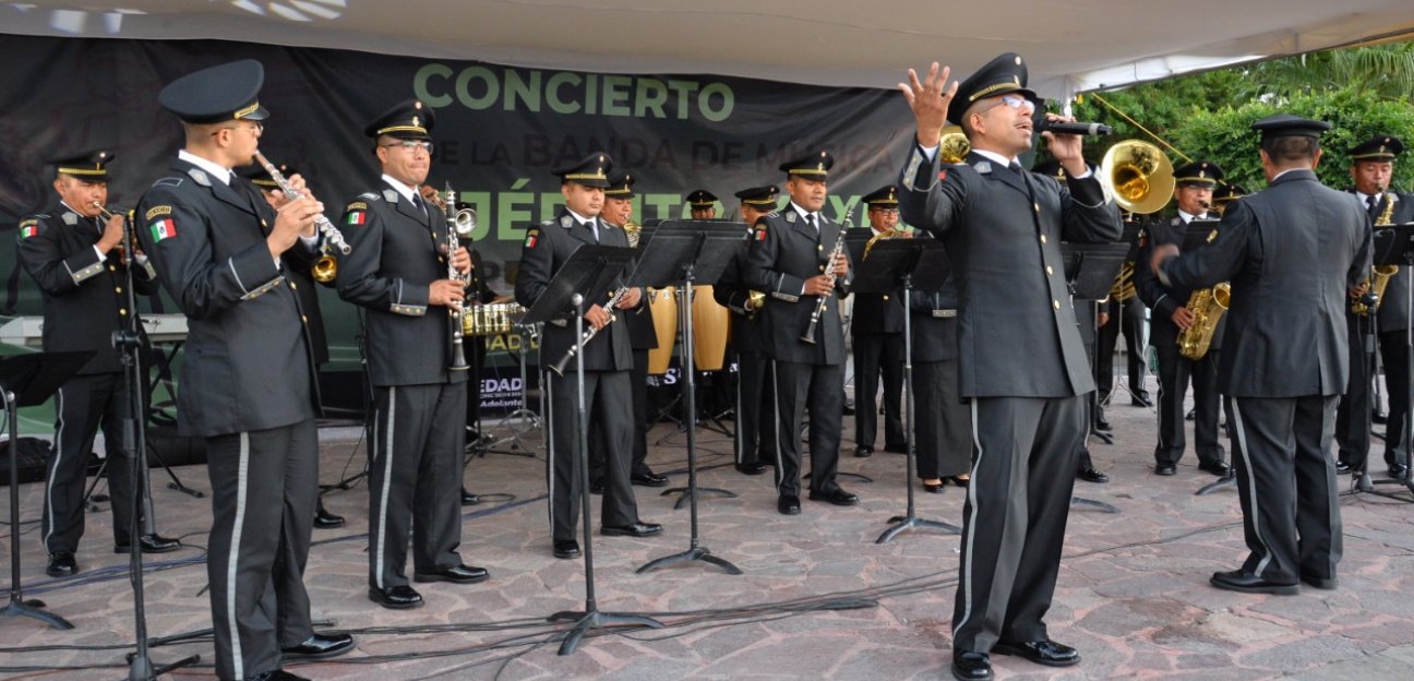 La banda de música de la IV región militar de la Secretaría de la Defensa Nacional (SEDENA) ofreció un concierto gratuito al público soledense que se dio cita en la Plaza Principal del municipio este martes por la tarde.