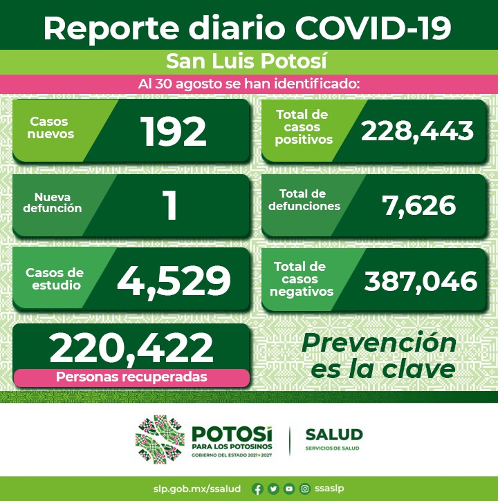En la Jurisdicción Sanitaria I se detectaron 168 de los nuevos casos; seis, en la Jurisdicción Sanitaria II de Matehuala; seis, en la Jurisdicción Sanitaria III de Villa de Pozos; tres, en la Jurisdicción Sanitaria IV de Rioverde; cinco, en la Jurisdicción Sanitaria V de Ciudad Valles; uno en la Jurisdicción Sanitaria VI de Tamazunchale; cuatro, nuevos contagios en personas residentes de otra entidad. Y en la Jurisdicción Sanitaria VII de Tancanhuitz no se presentaron casos nuevos.