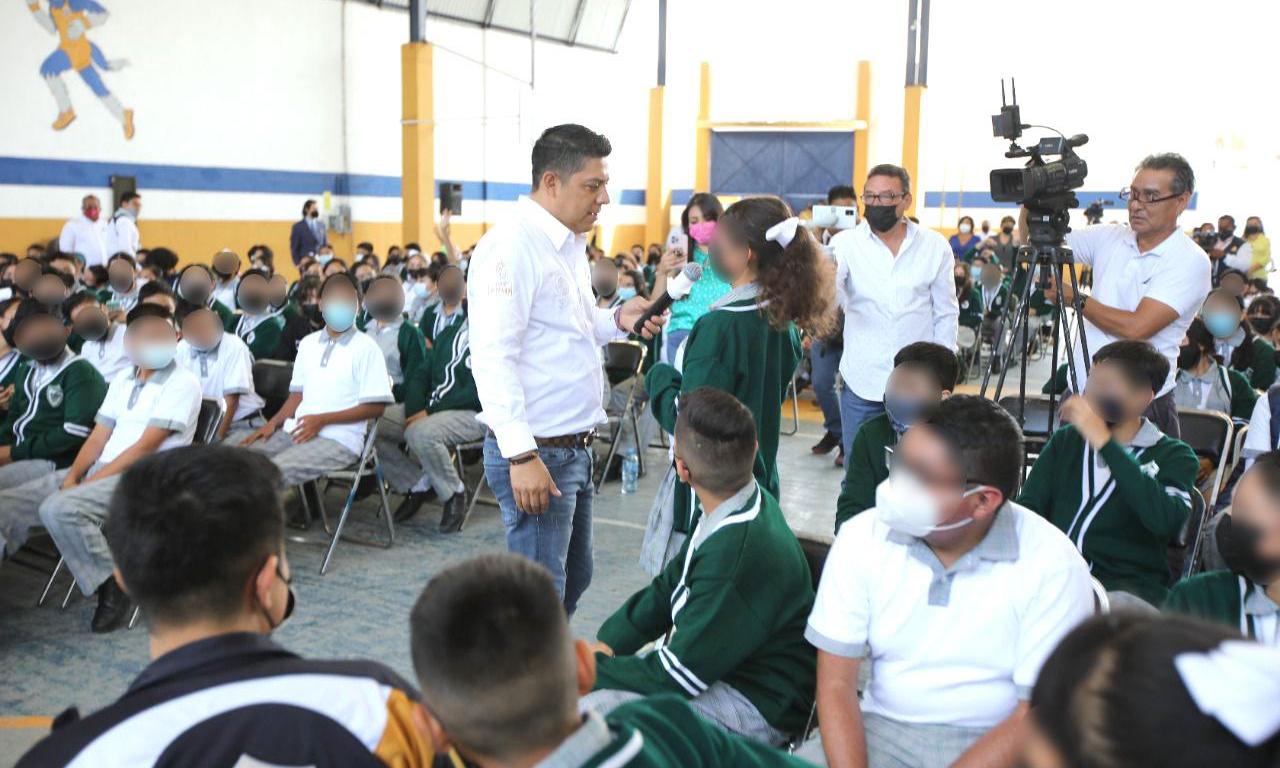 Con la emoción que caracteriza a la juventud, entre aplausos, porras y gritos, el Mandatario cortó el listón inaugural de este nuevo espacio, que transformó un lugar donde antes sólo había tierra en un lugar lleno de vida para que las nuevas generaciones practiquen el deporte como un complemento en su formación académica.