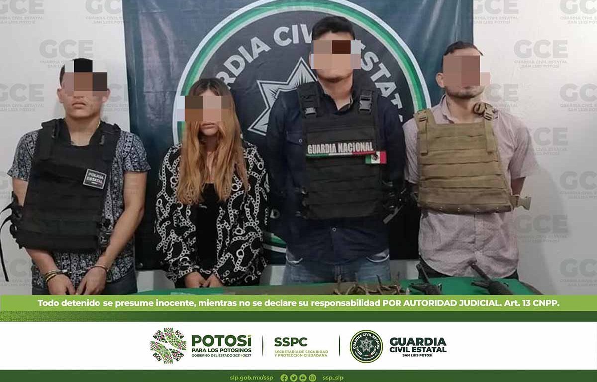 Tamasopo S.L.P.- En una acción operativa a cargo de agentes de la Guardia Civil Estatal en esta región y como parte de los trabajos de inteligencia de la institución para pacificar la Entidad y reconstruir la paz social, se informa la desarticulación de una célula delincuencial; a quienes se les aseguró droga, armas largas, chalecos balísticos y artefactos conocidos como “poncha llantas”.