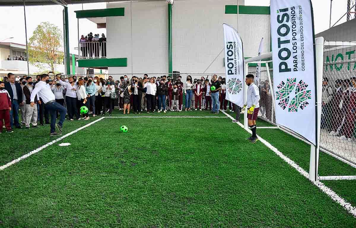 Alumnos y autoridades educativas de la Escuela Secundaria Técnica Número 79 ubicada en Cactus, en Soledad de Graciano Sánchez y de la escuela secundaria general «Sentimiento de la Nación», de la colonia Satélite, en la capital potosina, beneficiarias de la entrega de canchas deportivas por parte del Gobierno del cambio, reconocieron el compromiso del Gobernador Ricardo Gallardo Cardona de transformar la educación en el Estado y cumplir el sueño de miles de jóvenes estudiantes.