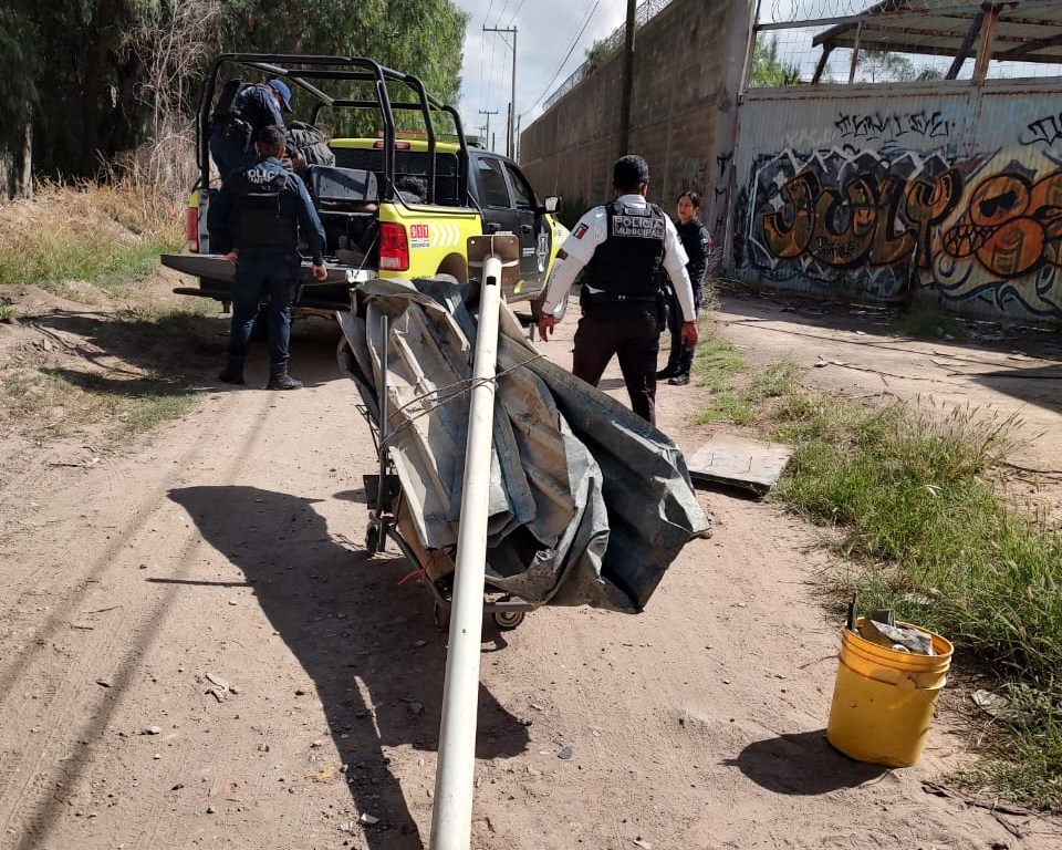 Los agentes de inmediato arribaron a Carretera 57 y Acceso 1, en Villa de Pozos, donde rodearon el lugar para evitar que los señalados pudieran darse a la fuga, fue por la puerta trasera donde visualizaron a cuatro hombres que cargaban tubos y láminas de metal.