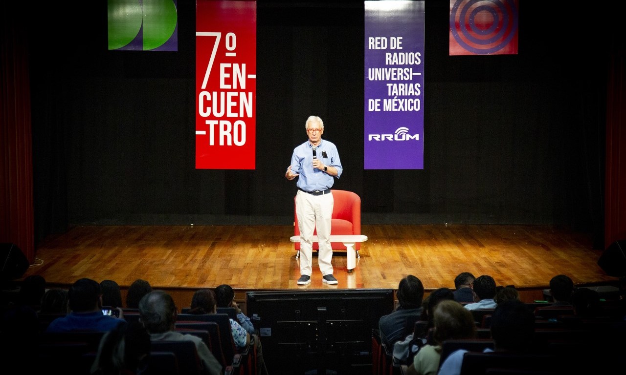 Como parte de las actividades del 7º. Encuentro de la Red de Radios Universitarias en México, el comunicador Javier Solórzano ofreció la conferencia “Radios Universitarias; inclusión y ciudadanía”, en el Paraninfo Universitario “Rafael Nieto Compeán” de la Universidad Autónoma de San Luis Potosí.