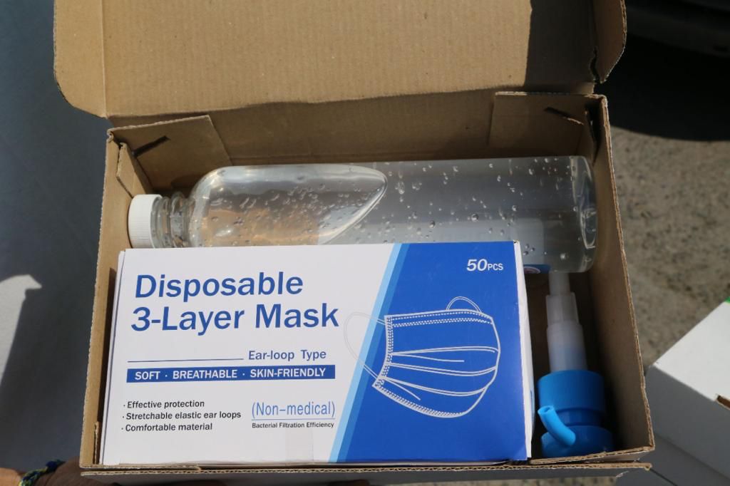 El contenido de cada paquete consiste en una botella de gel desinfectante de 500 mililitros en envase de plástico transparente y tapa dosificadora para un fácil uso, además de una caja de 50 cubrebocas tricapa desechables, plisados y con ajustador nasal que permite mayor comodidad al realizar actividades cotidianas. Todo el material cuidado con los más altos estándares sanitarios.