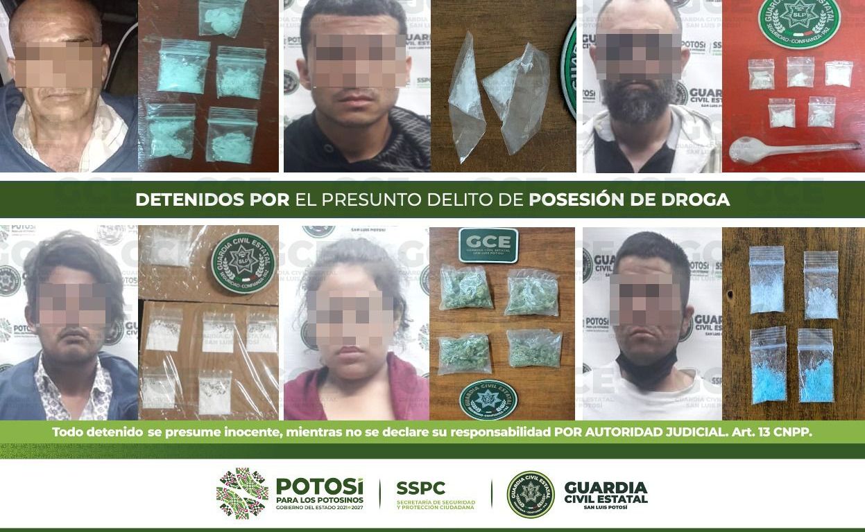 Gracias a labores de seguridad y vigilancia desplegadas para inhibir conductas que vulneren la integridad de la ciudadanía, agentes de la Guardia Civil Estatal (GCE) detuvieron a 9 personas por presuntos delitos contra la salud en su modalidad de posesión de droga.