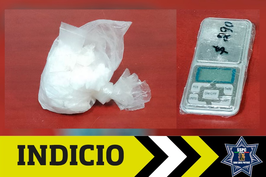 Así mismo fue encontrada una bolsa en el asiento trasero que contenía en su interior un polvo granulado y piedra blanca con las características similares a la droga sintética conocida como cristal, y una báscula gramera.