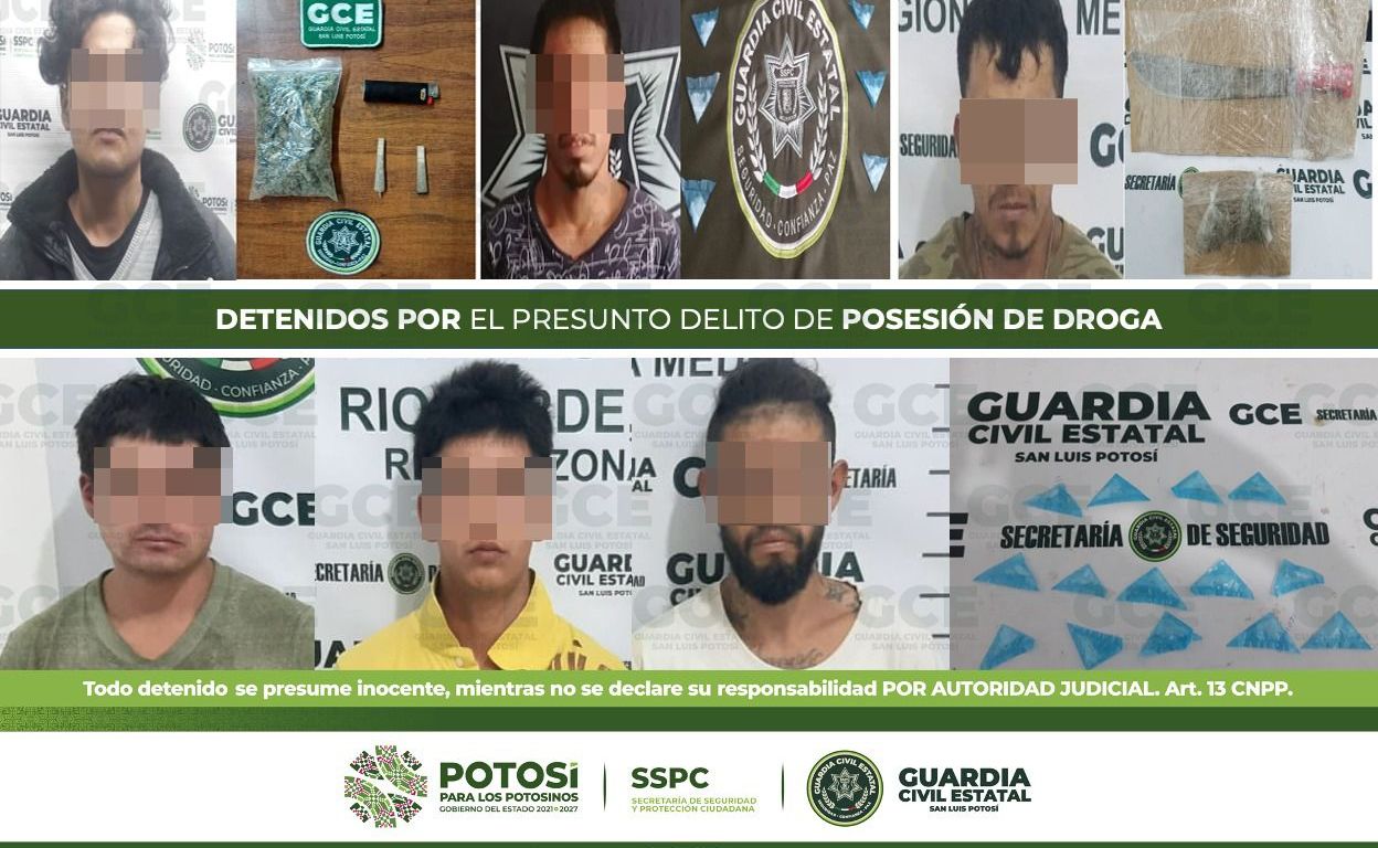 Dentro de las acciones preventivas que coadyuvan a inhibir la venta y consumo de droga en el Estado, oficiales de la Guardia Civil Estatal (GCE) detuvieron a 6 personas por el presunto delito de posesión de droga.