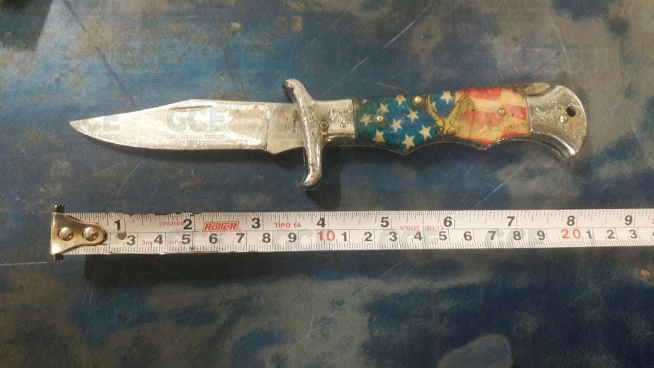 Uno de los hechos fue durante los patrullajes preventivos en la calle de Francia en la colonia Jardines de Oriente; ahí, fue detenido Ariel de 32 años de edad a quien se le aseguró una navaja de aproximadamente 20 centímetros.