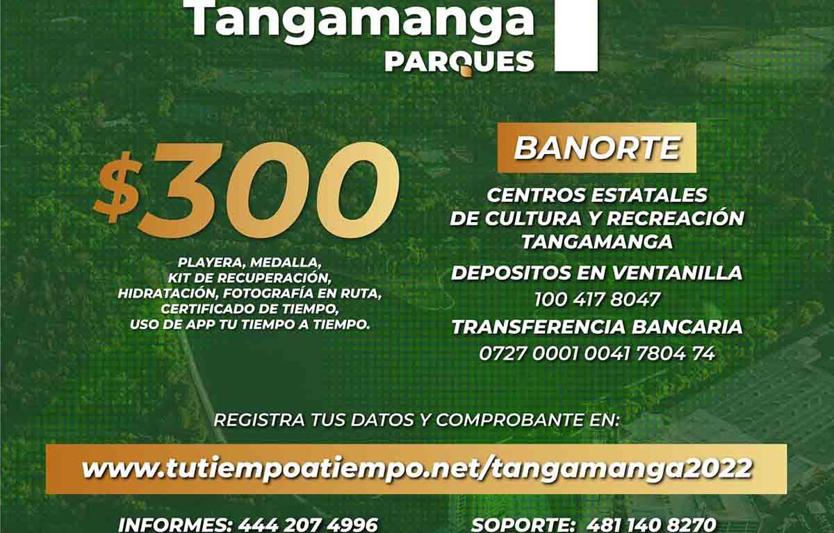 Para quienes están interesados, la Dirección General pone a su disposición las redes sociales de los Parques Tangamanga I y II, en Facebook, Twitter e Instagram, donde podrán encontrar mayores informes, así como su línea telefónica 444 207 4996.