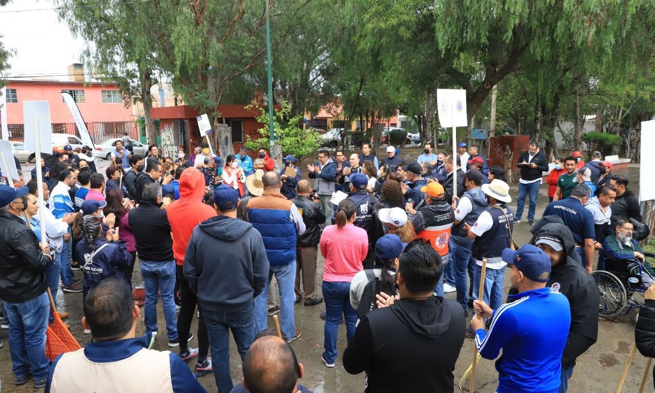 En la 44 edición del programa “Domingo de Pilas”, el alcalde Enrique Galindo Ceballos visitó la colonia San Luis Rey, donde junto con vecinos, trabajadores y directores municipales, realizó trabajos de limpieza, rescate de espacios públicos y mejoramiento del alumbrado, además de atender peticiones de los ciudadanos, especialmente relacionados con el desazolve de drenajes colapsados, lo que generaba severos problemas de contaminación en la zona.