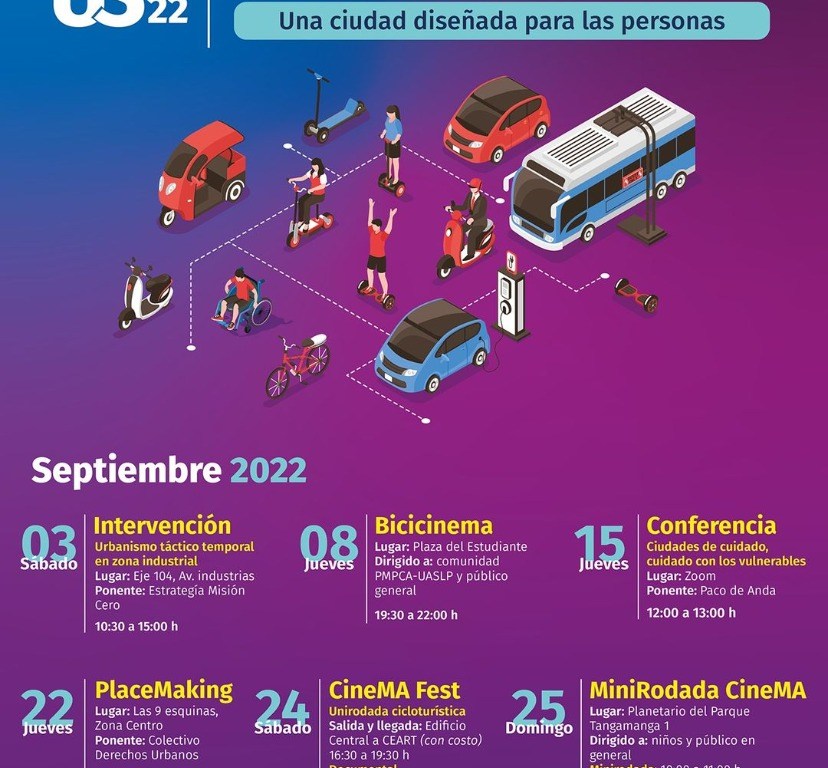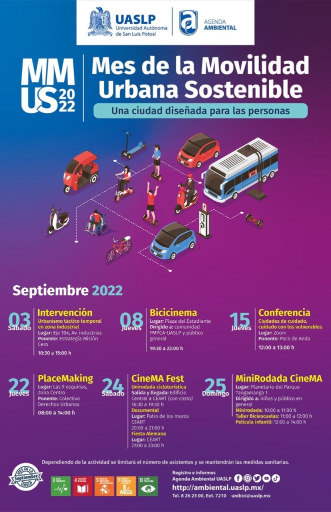 “Una ciudad diseñada para las personas” es la premisa que este año Agenda Ambiental de la Universidad Autónoma de San Luis Potosí (UASLP) a través de su programa UniBici, propuso para conmemorar en septiembre el Mes de la Movilidad Urbana Sostenible (MMUS), con un programa integrado por actividades académicas, recreativas y de educación ambiental para todo público.