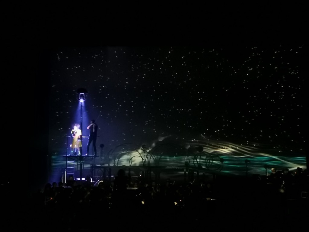 Gracias al empleo de sofisticada tecnología, el foro se cubrió de agua para sumergir al espectador en el fondo de mar, se convirtió en una noche estrellada, en una ciudad de hogares grises, en un campo de batallas internas y en muchos otros pasajes que provocaron un viaje en el que también el amor se hizo presente, a través del solo interpretado por el chelista Rolando Fernández, quien compitió con el violinista Yorrick Troman, por el corazón de Chula The Clown.