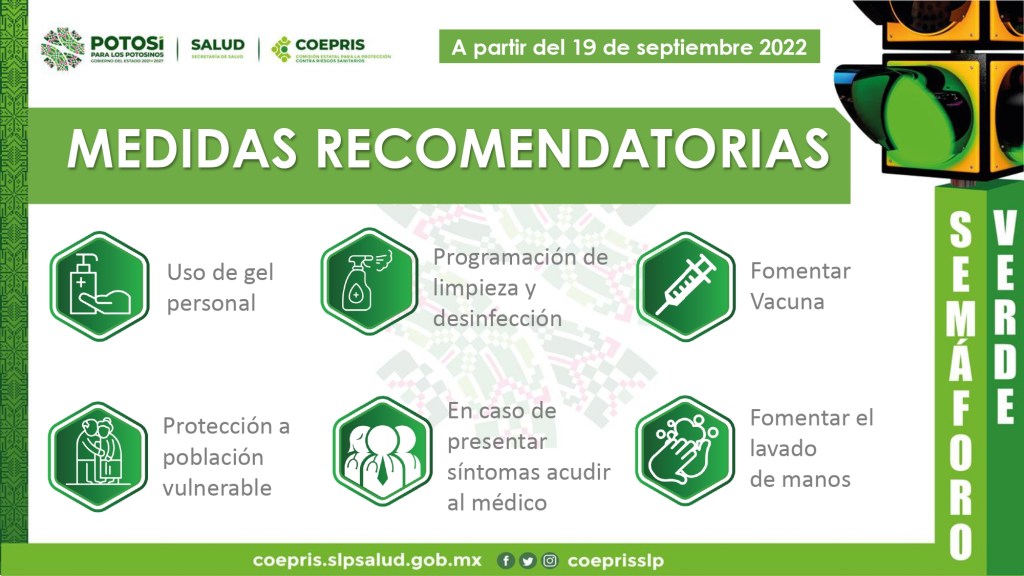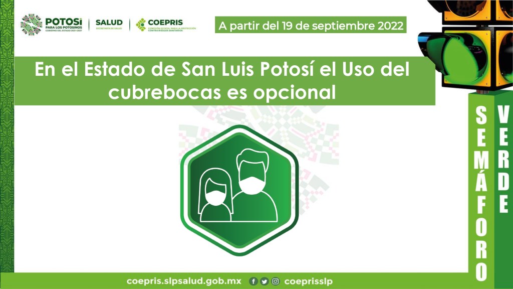 A partir del lunes 19 de septiembre el uso de cubrebocas será opcional en el Estado, recomendando su uso en espacios cerrados y transporte público, así como mantener lugares ventilados, lavado de manos de manera frecuente o uso de gel, proteger a la población vulnerable como lo son personas adultas mayores y quienes padecen alguna enfermedad crónica.