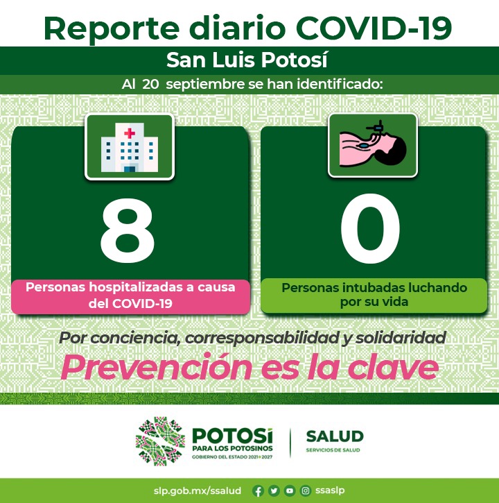 El Comité Estatal para la Seguridad en Salud y los Servicios de Salud informan que se estará aplicando la segunda dosis de vacuna Pfizer-BioNTech pediátrica para niñas y niños de 5 a 8 años de edad en San Luis Potosí capital y Soledad de Graciano Sánchez. Los días 20, 21, 22 y 23 de septiembre, en un horario de 9:00 a 17:00 horas.