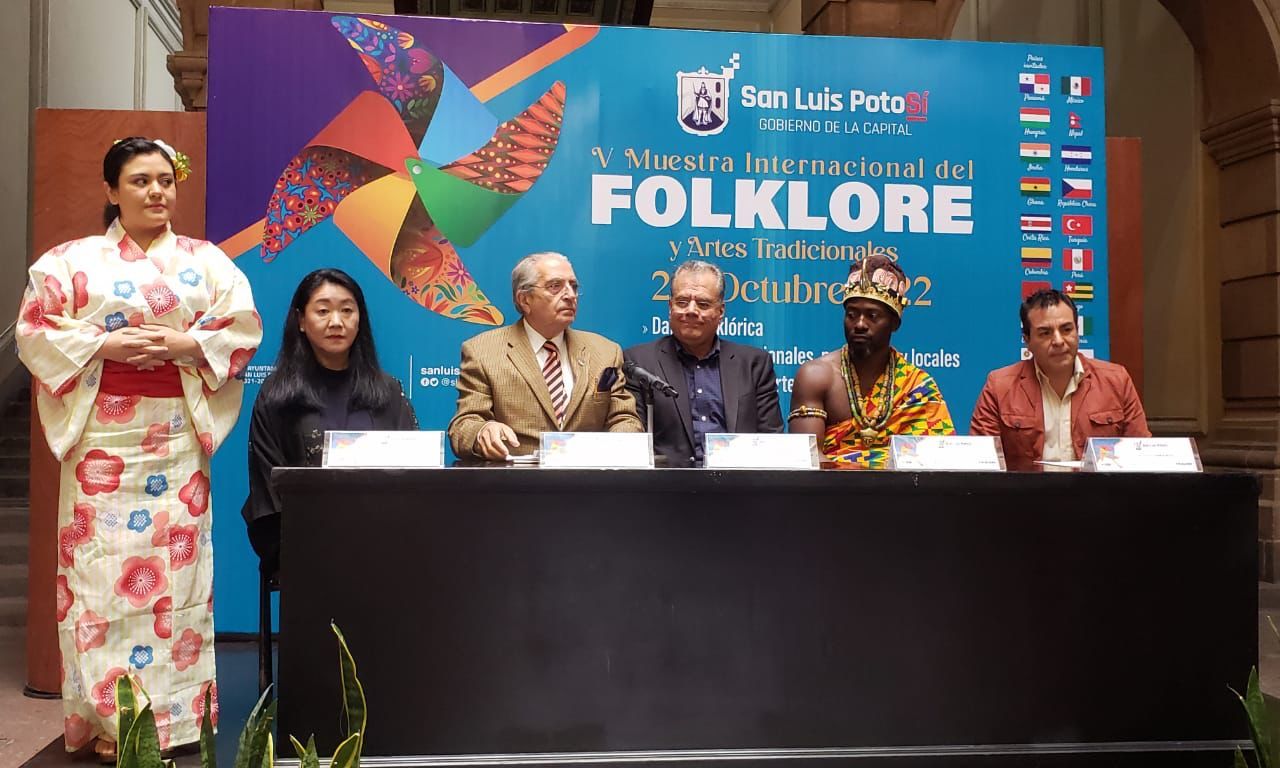 Del 2 al 6 de octubre próximos, la ciudad de San Luis Potosí se llenará de fiesta, tradición y color con países representantes de cuatro continentes del mundo, ya que se realiza la V Muestra Internacional del Folklore y Artes Tradicionales, con representantes de baile folklórico de Hungría, Ghana, Panamá, México, así como las exposiciones de Japón, República Checa, España, Costa Rica, Colombia, El Salvador, Nepal, Turquía, Perú, Ghana, Togo, Nigeria, Honduras, y Puebla, por parte de México.