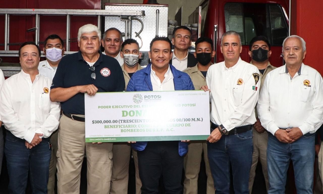 A nombre del Gobernador de San Luis Potosí, Ricardo Gallardo Cardona, el secretario general de Gobierno, J. Guadalupe Torres Sánchez, entregó un apoyo económico por 300 mil pesos al Cuerpo de Bomberos y un amplio reconocimiento por la vocación y entrega con la que atienden cada emergencia, durante una reunión que sostuvo con el comandante Adolfo Benavente Duque y el presidente del Patronato, Raúl Martínez Jiménez.
