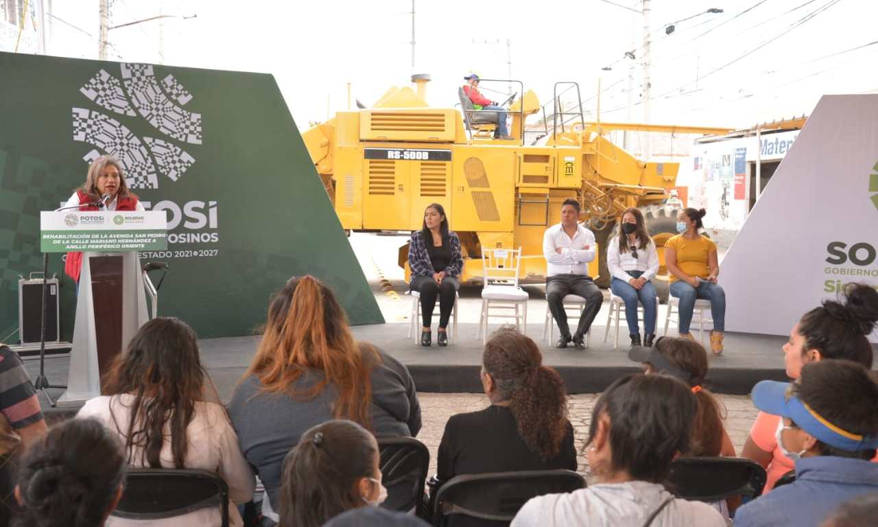 Con el objetivo de promover una mejor movilidad en el municipio, este miércoles, la alcaldesa de Soledad de Graciano Sánchez, Leonor Noyola Cervantes acompañada del Gobernador del Estado, Ricardo Gallardo Cardona así como de funcionarios estatales, municipales y representantes del poder legislativo, dio arranque a la obra de rehabilitación de la Avenida San Pedro en el tramo que comprende las calles de Mariano Hernández a Anillo Periférico Oriente.