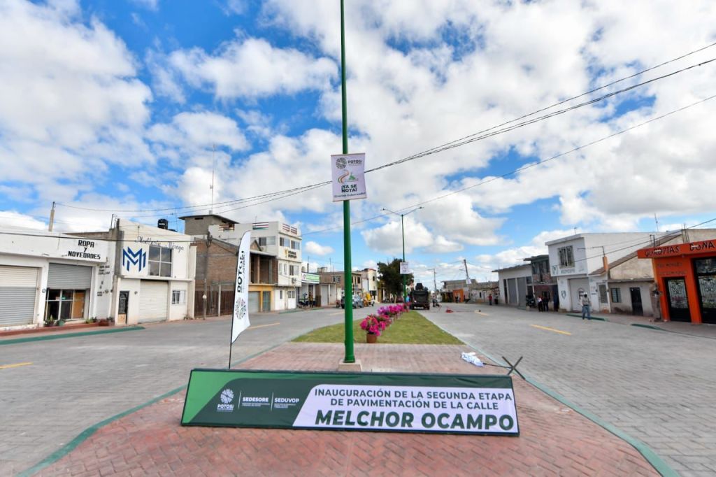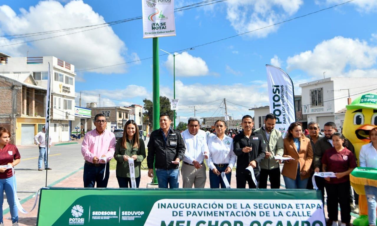 En el trabajo conjunto de fortalecer el desarrollo urbano de los municipios de las cuatro regiones del Estado e impulsar acciones para el bienestar de las familias potosinas, este jueves el Gobernador de San Luis Potosí, Ricardo Gallardo Cardona, inauguró la segunda etapa de la calle Melchor Ocampo en la cabecera de Venado con inversión de 8.5 millones de pesos y en beneficio de miles de habitantes y visitantes que acuden a este mágico pueblo del Altiplano potosino.