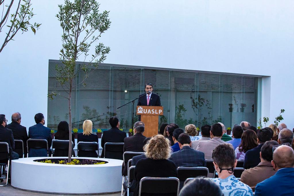 “Seguimos esforzándonos, en la espera de nuestra competencia, para coadyuvar a un mejor San Luis Potosí. Por lo que en estos momentos se entrega este edificio, enmarcado rumbo al centenario de nuestra autonomía. Siempre Autónoma. Por mi Patria Educare”.