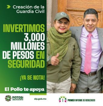 “El Pollo te apoya” es la campaña con la que el Gobierno del Estado rinde cuentas ante las y los potosinos del trabajo realizado durante el primer año de mandato de Ricardo Gallardo Cardona, y en la cual, destacan acciones en los rubros de infraestructura, seguridad, salud y programas sociales.