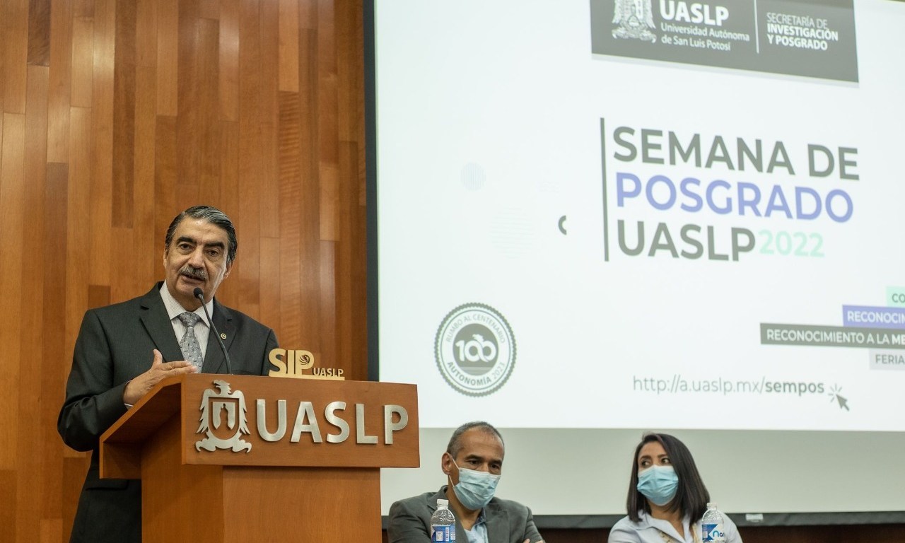 La Universidad Autónoma de San Luis Potosí, a través de la Secretaría de Investigación y Posgrado y la División de Vinculación, inauguró la Semana de Posgrado UASLP 2022, evento que tiene como objetivo promover la reflexión e intercambio de experiencias en el posgrado con un enfoque multidisciplinario para lograr énfasis en la resolución de las demandas de la sociedad.