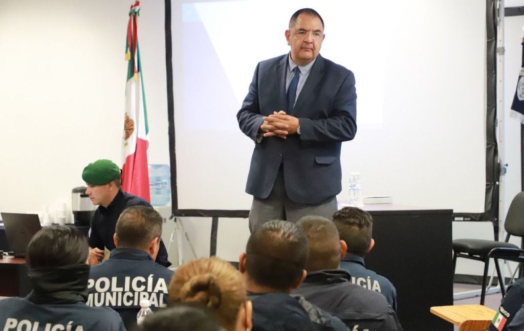 Se mantiene firme la capacitación y actualización de elementos de la Secretaría de Seguridad y Protección Ciudadana del Ayuntamiento de San Luis Potosí, por lo que en esta ocasión, el director académico del Instituto de Formación Policial de la Agencia de Investigación Criminal de la Fiscalía General de la República (FGR), Ricardo Arredondo Fierro, estuvo en la Capital para dictar una conferencia en temas de Primer Respondiente, Informe Policial Homologado y Registro Nacional de Detención.