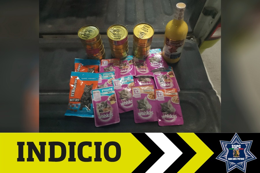 Durante la revisión preventiva, el personal de seguridad encontró que la mujer llevaba latas de atún, comida para gato así como una botella de rompope, mercancía con un valor comercial estimado en 621 pesos.