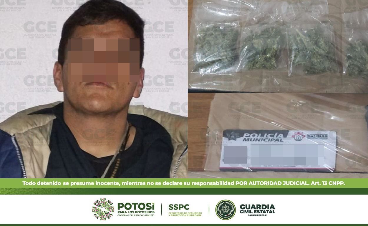 A través de las acciones operativas y tácticas desarrolladas para reforzar la seguridad pública de las familias en la región Altiplano, así como para prevenir conductas constitutivas de delito, agentes de la Guardia Civil Estatal (GCE) detuvieron a un hombre por la presunta posesión de droga.