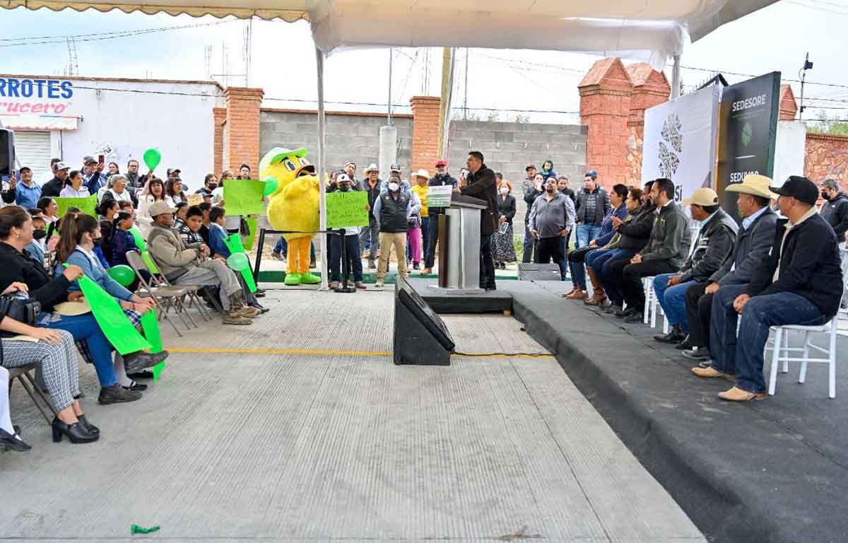 Ante una entusiasmada comunidad, el Mandatario potosino, afirmó que la transformación de Villa de Ramos está en proceso, con la renovada escuela Lázaro Cárdenas, que inauguró previamente y con la distribución de 45 mil apoyos sociales, que el próximo año llegarán a todas las familias, sin importar si militan en algún partido político, porque se gobierna para todas y todos los potosinos.